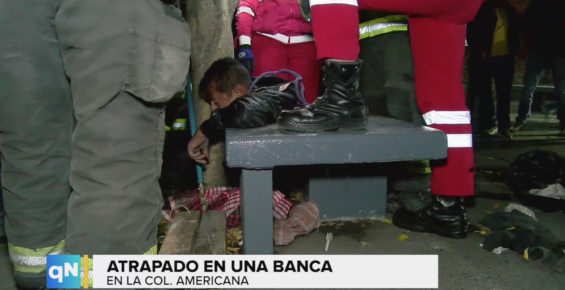 Rescatistas de Cruz Roja y Bomberos de Guadalajara arribaron a los cruces de López Cotilla y andador Escorza. En este lugar reportaron un hombre atrapado entre una banca de concreto y un árbol en la plazoleta del templo del Expiatorio.