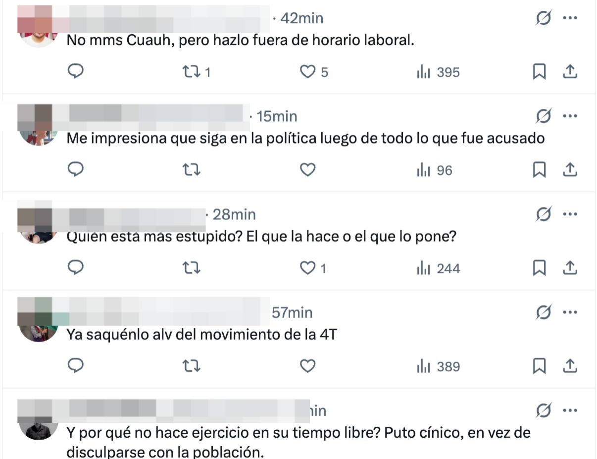 Mensajes como: “Desde que se inventaron los pretextos se acabaron los p%nd#jos”, “pero no en horas de trabajo que justificación tan 3stúp$da”, “Pobrecito. Mejor que se retire y vaya a cuidar su corazón a otra parte”, formaron parta de todas la publicaciones que se realizaron tras la respuesta de Blanco.
