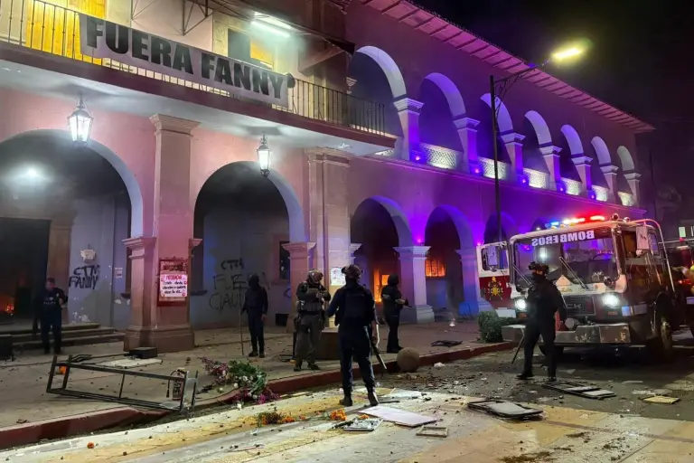 Durante la noche de este martes, una protesta realizada en Apatzingán, Michoacán, derivó en hechos violentos que culminaron con el incendio del Palacio de Gobierno municipal. La movilización se organizó tras los asesinatos del alcalde de Uruapan, Carlos Manzo, y del dirigente limonero Bernardo Bravo.