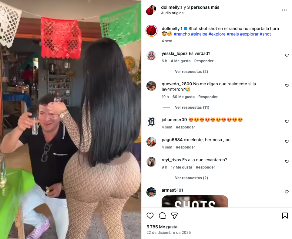 El 22 de diciembre de 2025, a las 12:59 horas, publicó un video en el que se le ve tomando shots de lo que parece ser tequila, en colaboración con Melissa Avendaño, de la cuenta ‘dollmelly.1’.