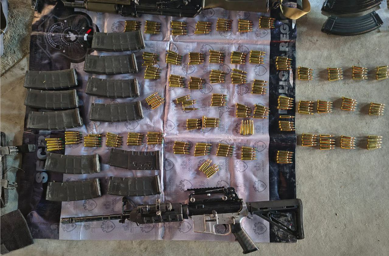 Siguiendo los protocolos de actuación policial, los elementos estatales aseguraron a los cinco sujetos y les decomisaron dos armas de fuego largas, dos armas cortas, varios cargadores, cientos de cartuchos útiles, chalecos tácticos, ponchallantas y una mira telescópica. Asimismo, se revisaron dos vehículos en los que presuntamente se trasladaban, los cuales portaban placas de entidades vecinas. Al consultar las plataformas oficiales, se confirmó que ambas unidades contaban con reporte de robo vigente.