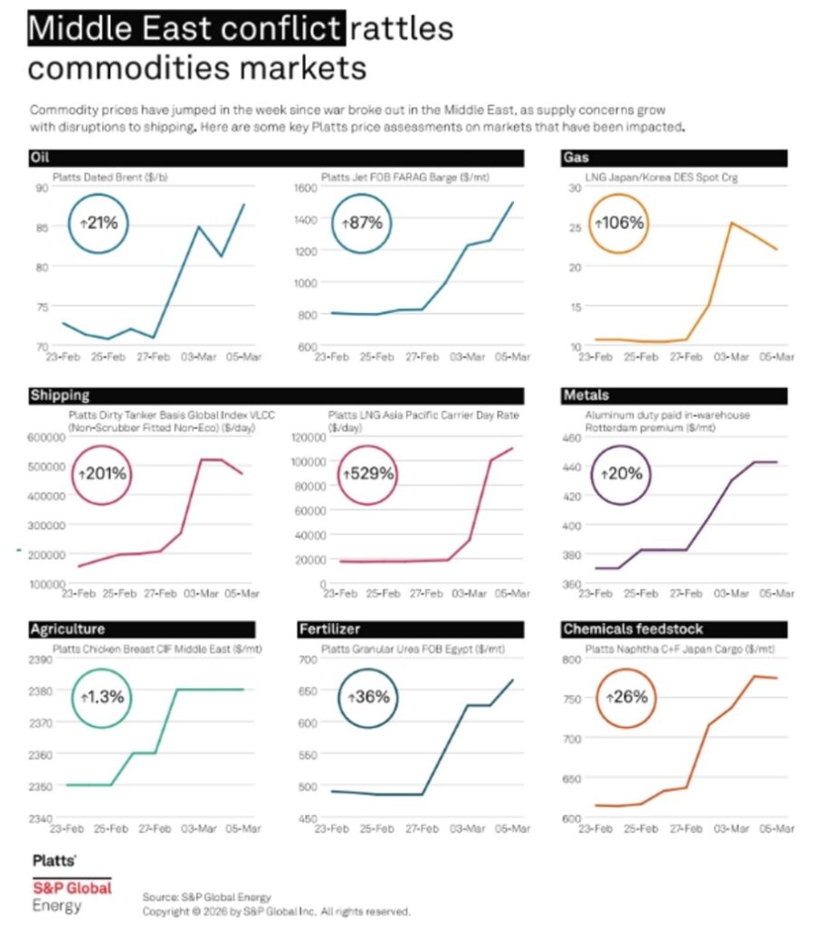 El cierre del Estrecho de Ormuz por parte de Irán ya tiene consecuencias sobre la economía mundial. Por dicho estrecho pasa el 20% del petróleo mundial y del gas natural licuado y el 30% del comercio internacional de fertilizantes como la urea, amoniaco y fosfatos.