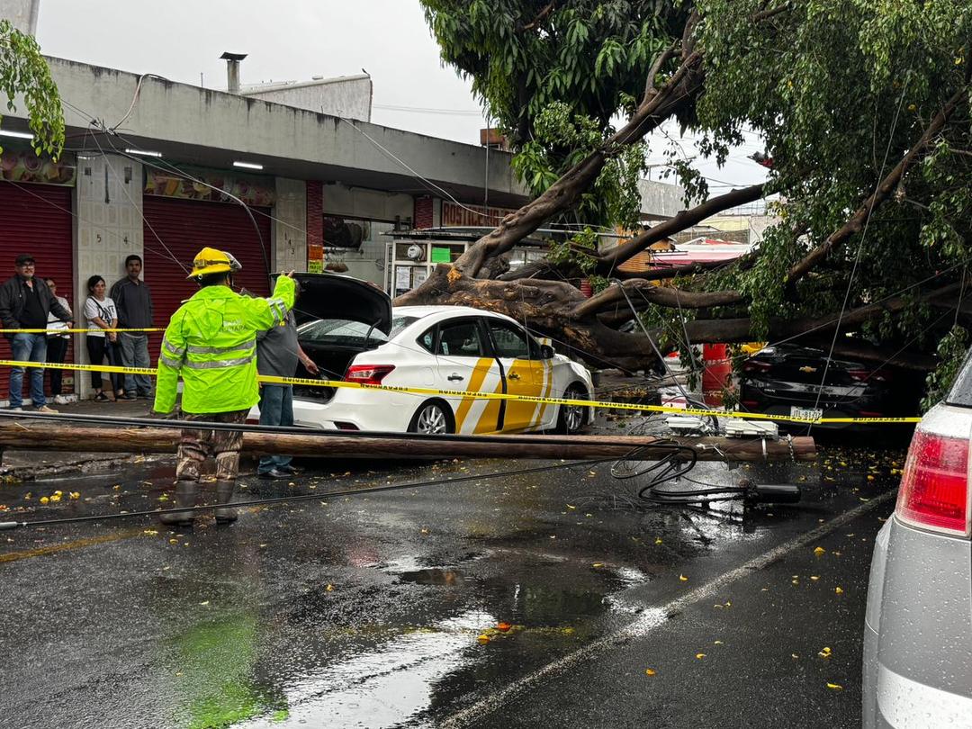 Lluvias en Guadalajara: Cae un árbol sobre dos vehículos