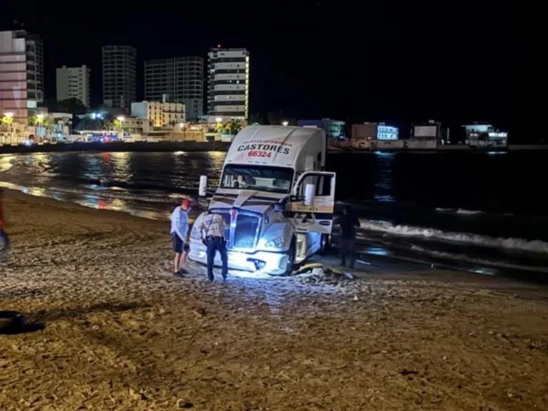 VIRAL: Chofer mete tráiler a playa de Mazatlán para pedir matrimonio
