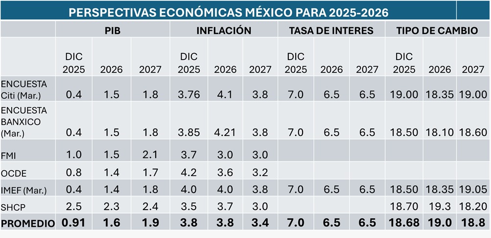 Ello significa que esperan que la guerra en Medio Oriente termine muy pronto, que la revisión del T-MEC sea favorable, que las empresas se adapten a los cambios regulatorios, y que el Plan México y el Plan de Inversión en Infraestructura reduzcan los cuellos de botella en sectores estratégicos y amplíen la capacidad productiva del país.